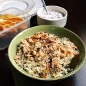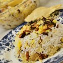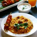 -After the steam has completely gone,open the lid and gently fluff the rice.After 5 minutes take out the rice into a serving bowl.Garnish with fried onions,Cashew nuts and raisins.